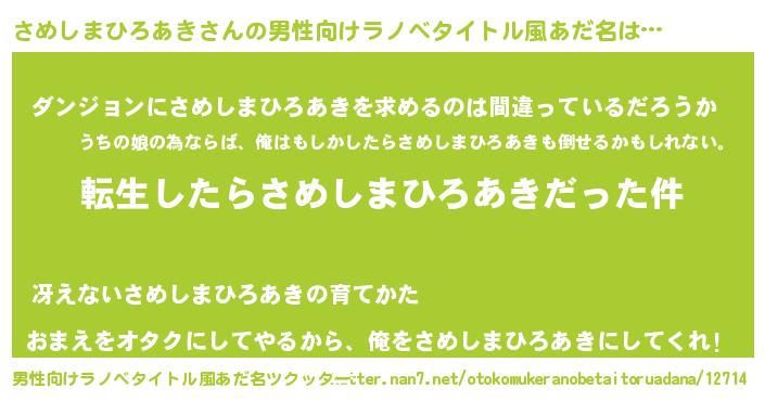 | 胡散臭い通販商品みたいなあだ名 | 『伝統あるサプリメント…その名も「さめしまひろあき」』 |