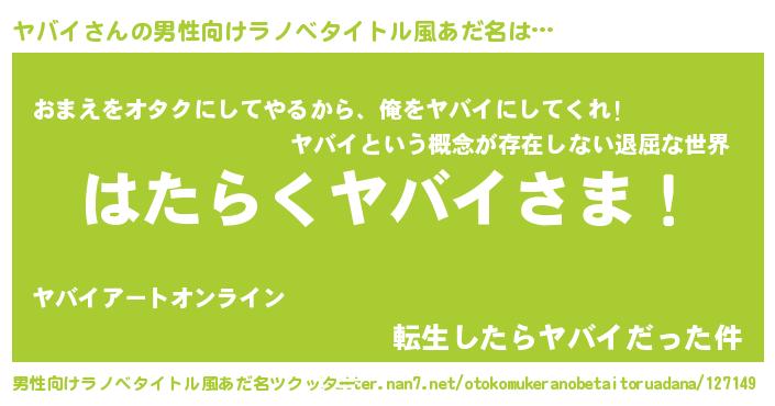 | ヒーロー風カッコイイあだ名 | 『正義の使者ヤバイ』『ネオヤバイ』 |