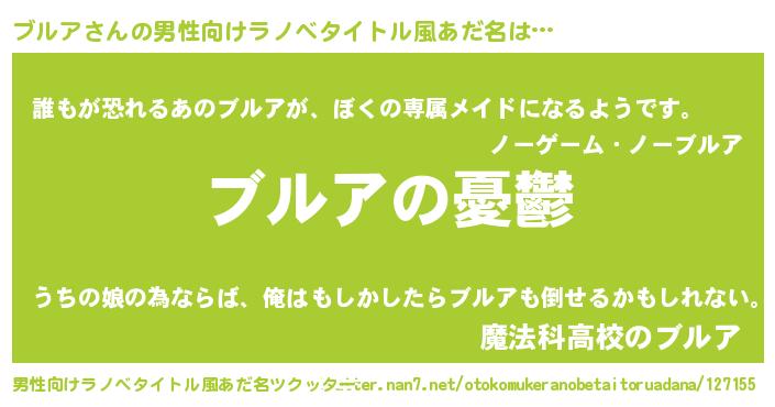 | 女子向けラノベタイトル風あだ名 | 『(仮)ブルアのやんごとなき事情』 |