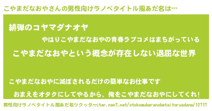 | 意味不明あだ名 | 『永久保存こやまだなおや』 |