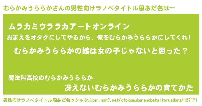 | 女子向けラノベタイトル風あだ名 | 『むらかみうららか様がみてる』 |