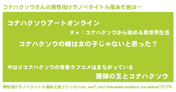 | 女子向けラノベタイトル風あだ名 | 『コナハクソウ様がみてる』 |