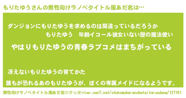 もりたゆうさんの男性向けラノベタイトル風あだ名をツクッター!
