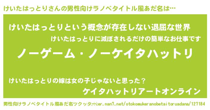 | 女子向けラノベタイトル風あだ名 | 『けいたはっとり恋絵巻』 |