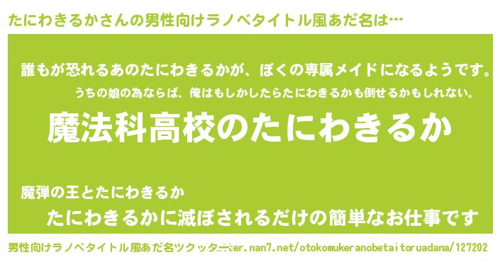 | 女子向けラノベタイトル風あだ名 | 『たにわきるかなんてお断りですっ。』 |
