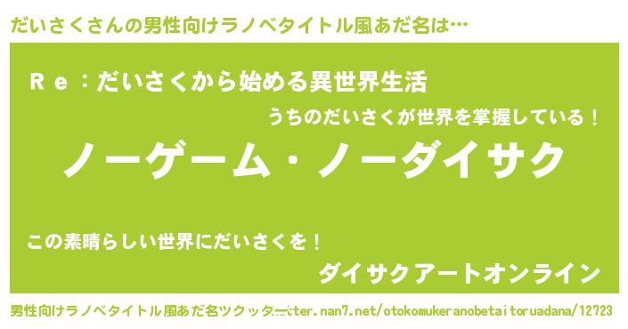 | 女子向けラノベタイトル風あだ名 | 『だいさく恋絵巻』 |