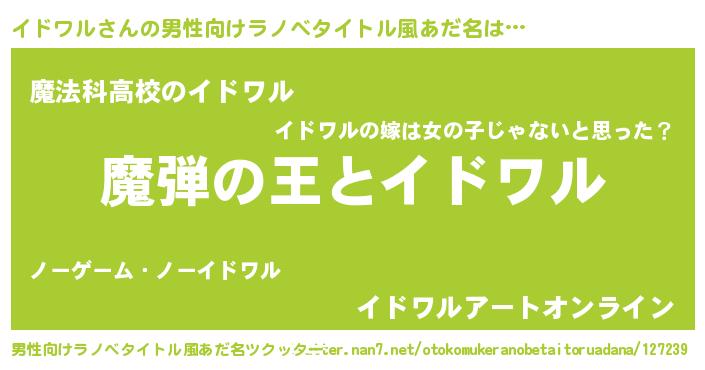 | 意味不明あだ名 | 『住所不定無職イドワル(13歳)』 |