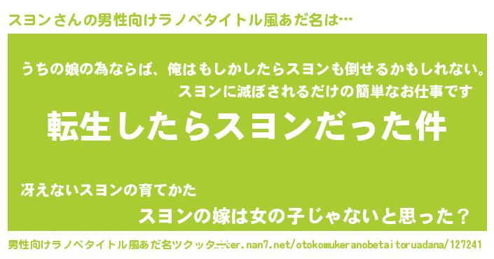 | 意味不明あだ名 | 『もやし科スヨン属』『自称スヨン』 |