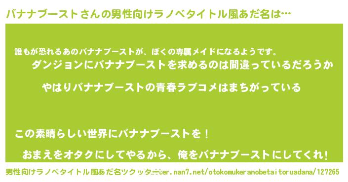 | 女子向けラノベタイトル風あだ名 | 『バナナブーストの雑貨屋さん』 |