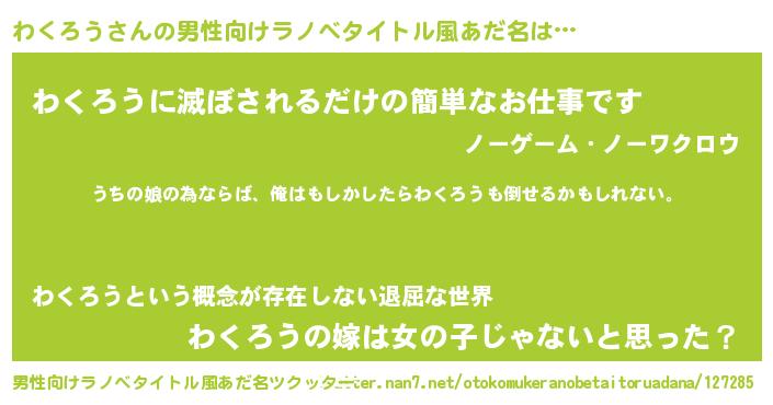 | 意味不明あだ名 | 『わくろうフォーエバー』 |