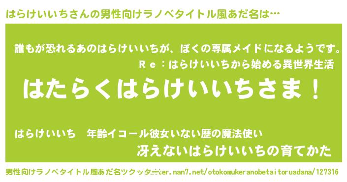 | 意味不明あだ名 | 『永久保存はらけいいち』 |