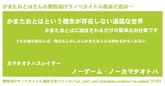 | 女子向けラノベタイトル風あだ名 | 『かまたおとは伯爵の花嫁』 |