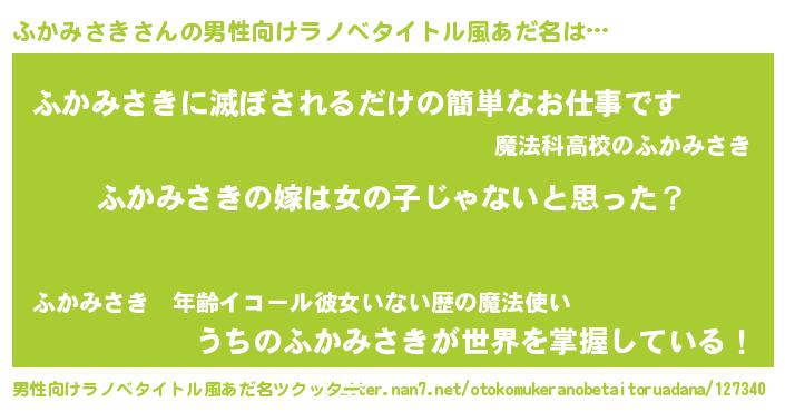 | 女子向けラノベタイトル風あだ名 | 『ふかみさきの卵を拾いまして』 |