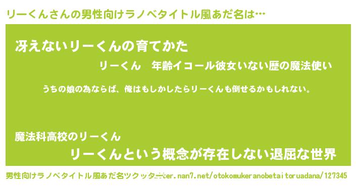 リーくんさんの男性向けラノベタイトル風あだ名をツクッター!