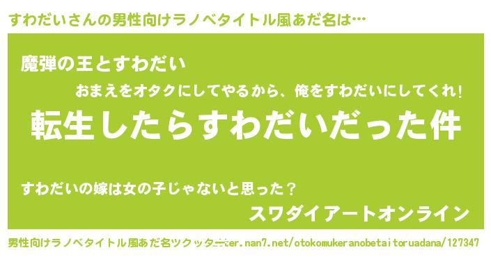 | 女子向けラノベタイトル風あだ名 | 『すわだいの玉の輿計画!』 |