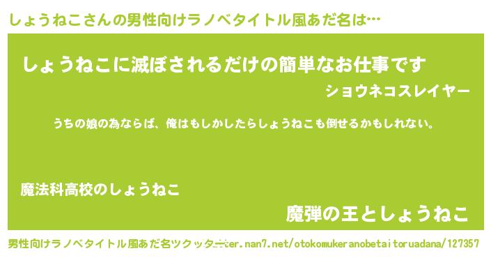| 胡散臭い通販商品みたいなあだ名 | 『世界が平和になる高級そうな絵画…その名も「しょうねこ」』 |