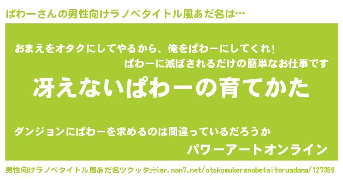 | 胡散臭い通販商品みたいなあだ名 | 『お金では代えられない隕石のかけら…その名も「ぱわー」』 |