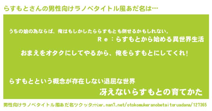| ヒーロー風カッコイイあだ名 | 『正義の使者らすもと』『ネオラスモト』 |
