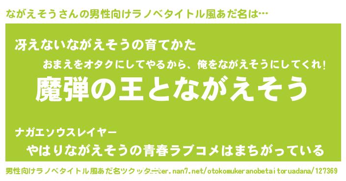 | 意味不明あだ名 | 『住所不定無職ながえそう(1歳)』 |