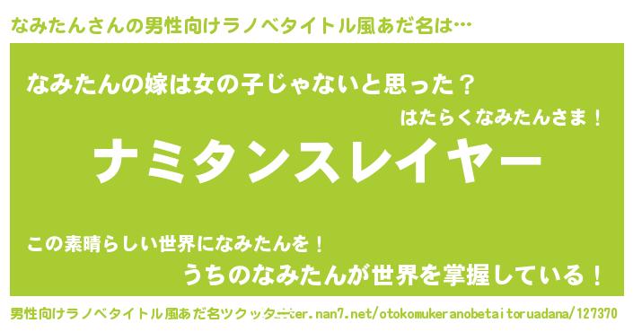 | 胡散臭い通販商品みたいなあだ名 | 『信頼と実績のネックレス…その名も「なみたん」』 |