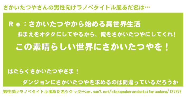| ヒーロー風カッコイイあだ名 | 『仮面サカダー』『最強戦士サカイタツヤ』 |