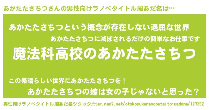 | 女子向けラノベタイトル風あだ名 | 『あかたたさちつなんてお断りですっ。』 |