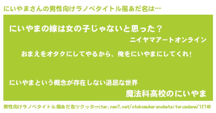 | 女子向けラノベタイトル風あだ名 | 『にいやま夫妻のなれそめ』 |
