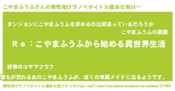 | 女子向けラノベタイトル風あだ名 | 『闇のこやまふうふ』 |