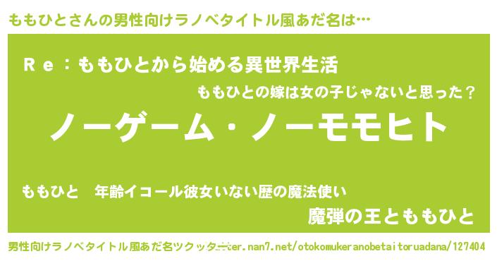 ももひとさんの男性向けラノベタイトル風あだ名をツクッター!