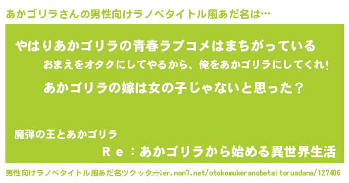 | 女子向けラノベタイトル風あだ名 | 『あかゴリラ様がみてる』 |