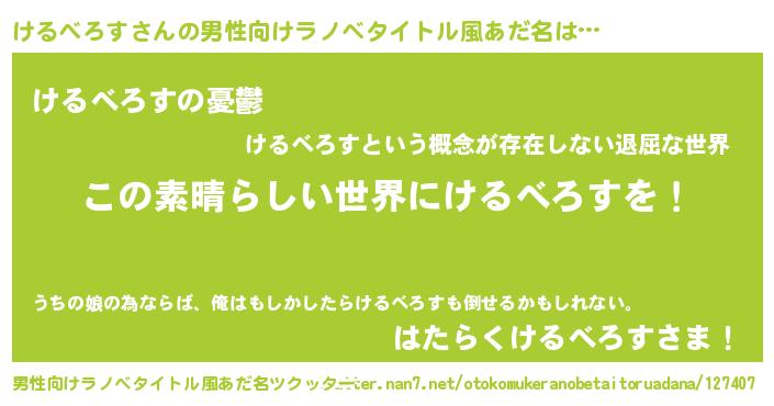 | 意味不明あだ名 | 『住所不定無職けるべろす(9歳)』 |
