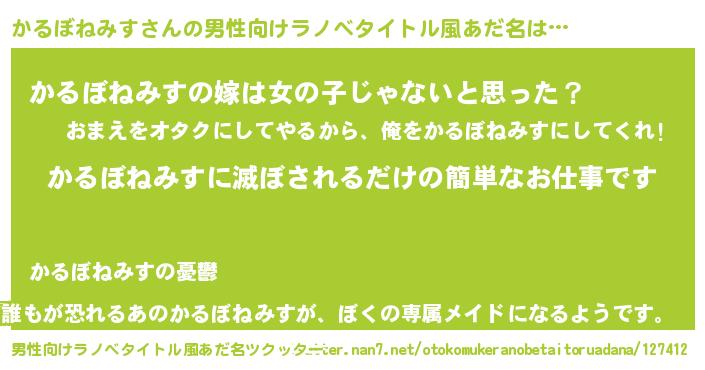 | 胡散臭い通販商品みたいなあだ名 | 『全米が絶賛したサプリメント…その名も「かるぼねみす」』 |