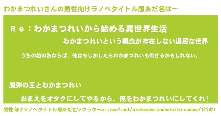 | 意味不明あだ名 | 『わかまつれいフォーエバー』 |