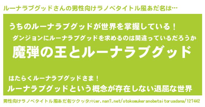 | 意味不明あだ名 | 『住所不定無職ルーナラブグッド(7歳)』 |
