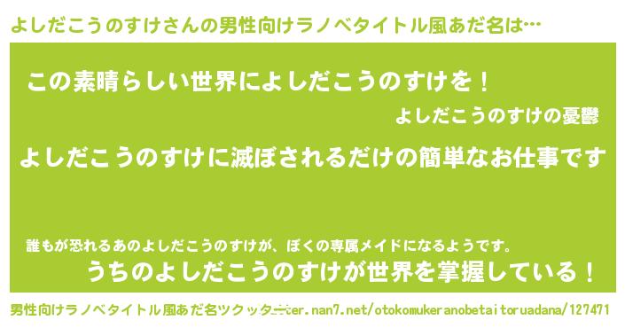 | 意味不明あだ名 | 『住所不定無職よしだこうのすけ(6歳)』 |