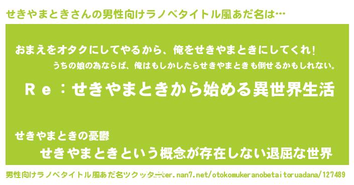 | 意味不明あだ名 | 『自称せきやまとき』 |