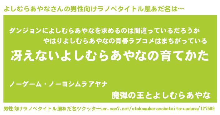 | 女子向けラノベタイトル風あだ名 | 『男装よしむらあやなの憂鬱な任務』 |