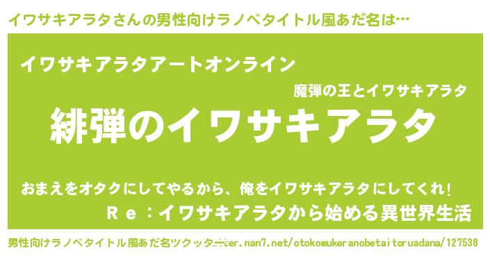 | 胡散臭い通販商品みたいなあだ名 | 『必ず成功する霊験あらたかなお札…その名も「イワサキアラタ」』 |