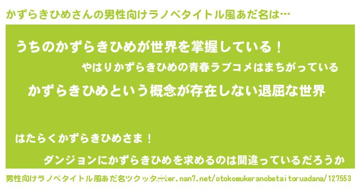 | 胡散臭い通販商品みたいなあだ名 | 『来世でも幸せになれる健康食品…その名も「かずらきひめ」』 |