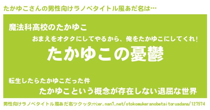 | 女子向けラノベタイトル風あだ名 | 『たかゆこ姫と円卓の騎士』 |