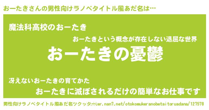 | 女子向けラノベタイトル風あだ名 | 『おーたき姫と円卓の騎士』 |