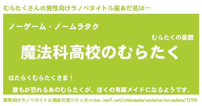 | 女子向けラノベタイトル風あだ名 | 『むらたくなんてお断りですっ。』 |
