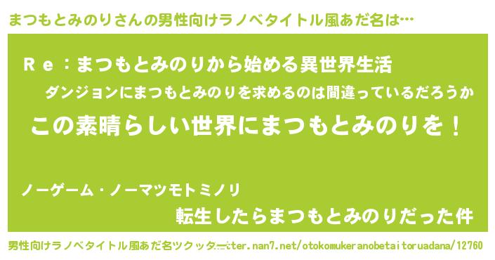 | 意味不明あだ名 | 『住所不定無職まつもとみのり(13歳)』 |