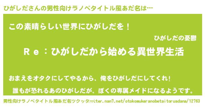 | 女子向けラノベタイトル風あだ名 | 『ひがしだストレイドッグス』 |