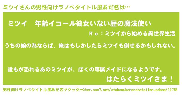 | 女子向けラノベタイトル風あだ名 | 『ミツイの婚約者』 |