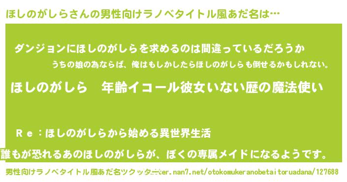 | 女子向けラノベタイトル風あだ名 | 『ほしのがしらの玉の輿計画!』 |