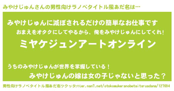| ヒーロー風カッコイイあだ名 | 『スーパーミヤケジュン』『炎刃騎士ミヤ』 |