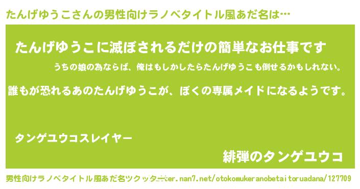 | ヒーロー風カッコイイあだ名 | 『ネオタンゲユウコ』『暗黒騎士タン』 |