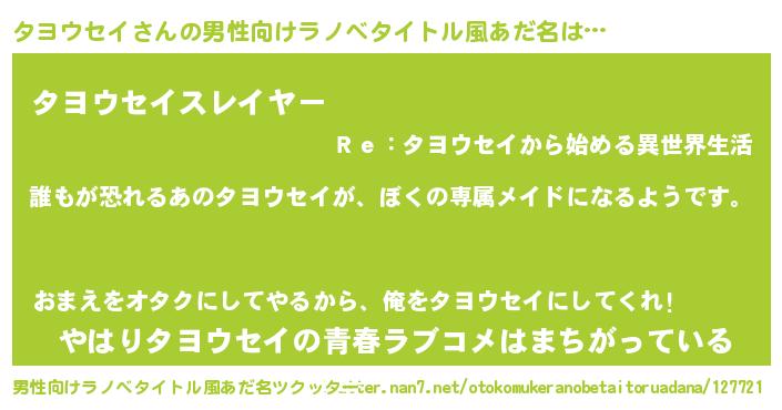 女子向けラノベタイトル風あだ名 | 『タヨウセイの契約王妃』 |
