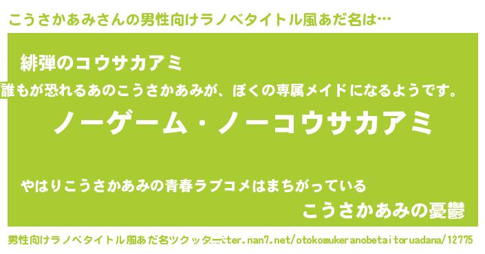 | 伝説のあだ名 | 『救世主となる占い師こうさかあみ』 |